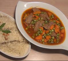 - في وعاء آخر نضع السمنة على النار، وعندما تذوب نضع البصلة المفرومة ناعما ونقلبها حتى يتغير لونها، ثم نضع الجزر المقطع إلى مكعبات والبطاطا المقطعة أيضا إلى مكعبات صغيرة ونقلبهم جميعا ونتركهم لمدة خمس دقائق على نار هادئة ، ثم نضيف البازلاء المسلوقة سابقا والبندورة المقشرة والمفرومة ناعما، ونرش ما نرغب من الملح ونقلبهم قليلا ونضع رب البندورة ونقلبهم جيدا .